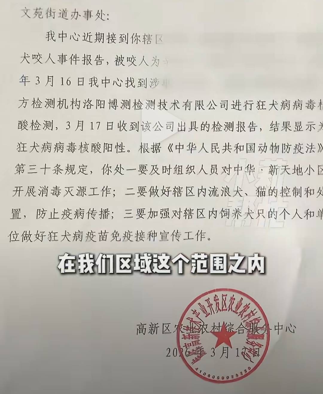 据河南广电民生频道小莉帮忙报道,中华·新天地小区业主辛女士表示,事发时有小朋友在家中玩耍,因家门半开,一只流浪狗尾随进入屋内。她发现后从楼上下来,在赶它出去时突然被咬了腿部。辛女士称,受伤后,她随即前往医院就诊,经医生诊断,其伤口属于狂犬病暴露级别中最严重的“三级暴露”,需立即处理。